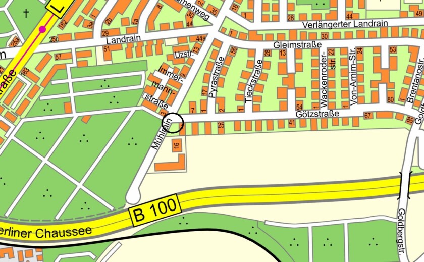 Es wird auf Folgendes hingewiesen: An der östlichen Grundstücksgrenze befindet sich die Zuwegung zu den einzelnen Grundstücken der Reihenhausbebauung (Götzstraße 1 - 6). In dieser Zuwegung liegen die Versorgungsleitungen sowie Abwasser. Es handelt sich hierbei nicht um öffentliche Leitungen, sondern um private Anschlussleitungen der anliegenden Eigentümer der Götzstraße 1 - 6. Der Schutzstreifen der Abwasserleitung fällt auf das Verkaufsgrundstück und ist nicht dinglich im Grundbuch gesichert. Erforderliche Instandsetzungsmaßnahmen am Leitungsbestand sind zu dulden.
